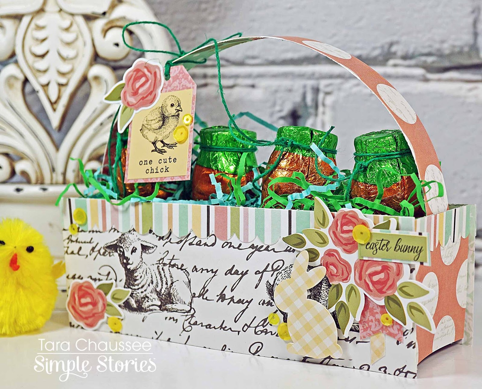 Hi everyone! I have one more Easter project to squeeze in before the holiday and it's a cute one! After I made my pretty egg container, I still had lots of the beautiful Simple Stories 'Happy Easter' collection left and couldn't resist making these sweet little treat baskets!