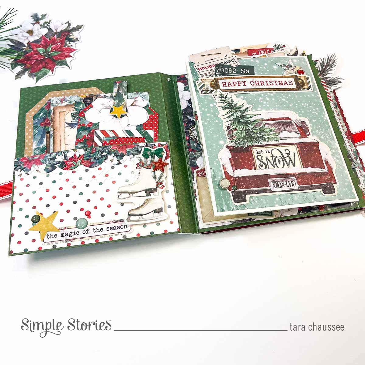 There is also another hidden pocket in between the last page and the back cover. This one holds some larger pieces of ephemera that would work great for journaling your Christmas memories! I added a few more embellishments to each as well!